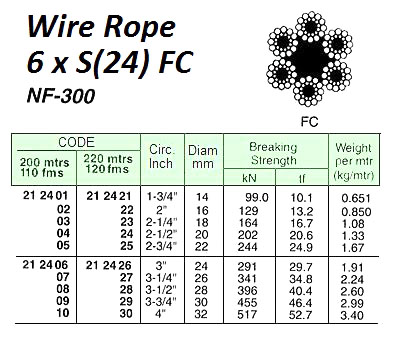 212407 WIREROPE,GALV.6xS(24)FC,NF-30026MMDIAx200MW/CERT.