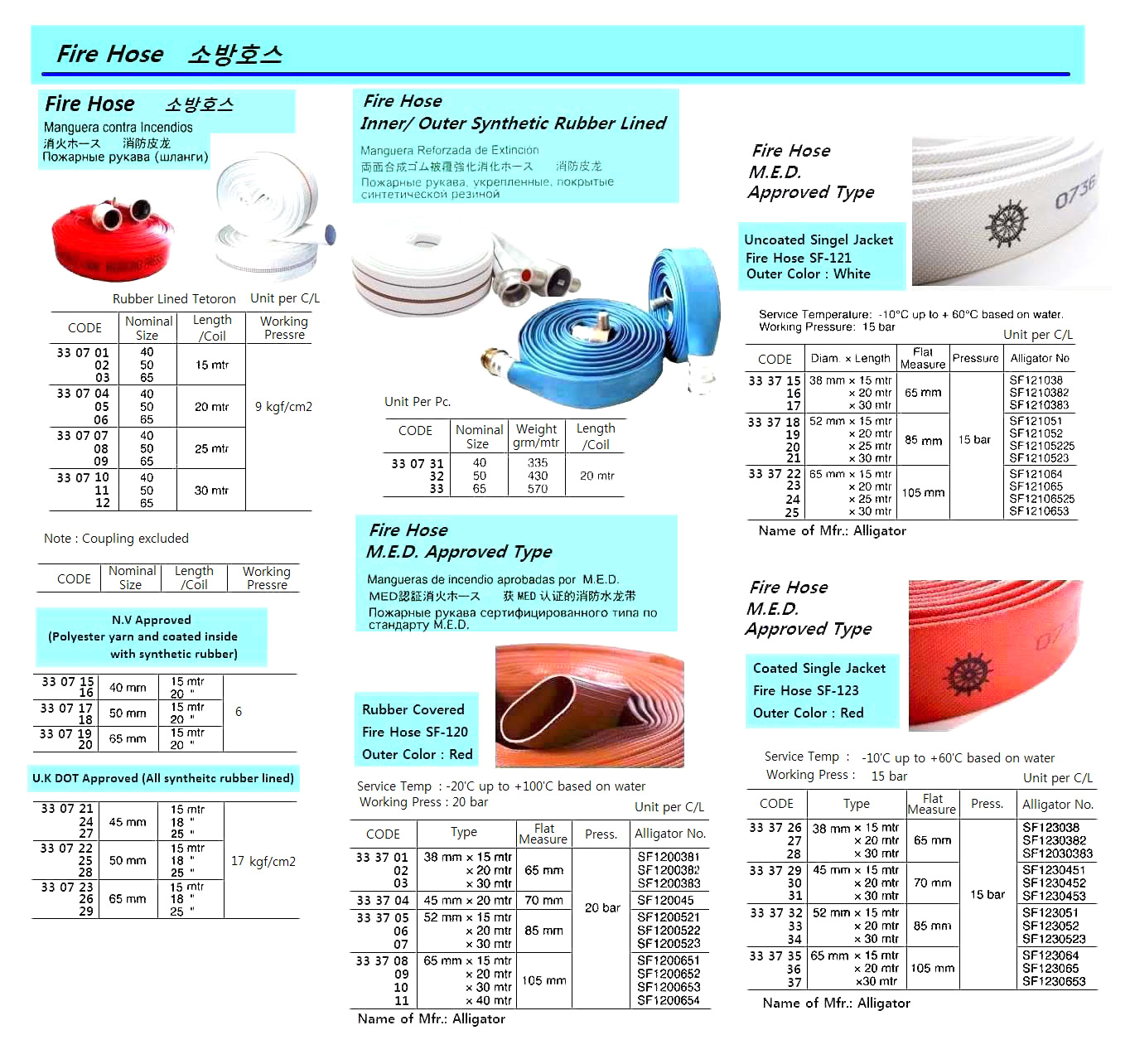 330705 FIREHOSE,RUBBERLINEDTETORON,9KGF/CM2,50MMx20M