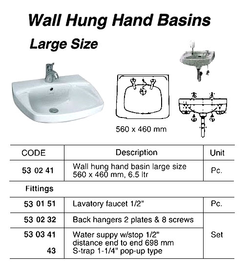 530241 WALLHUNGHANDBASIN,LARGESIZE560x460MM6.5LTR