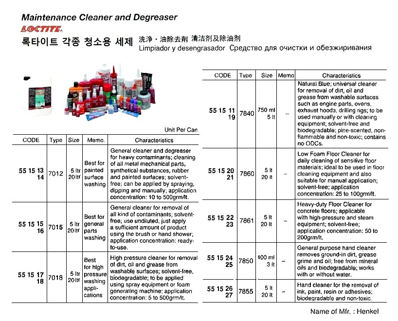 551520 LOCTITEPRODUCT,LOWFOAMFLOORCLEANER,NO.7860,5LTR/CAN