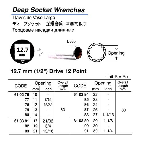 610378 SOCKETDEEPWRENCH12-POINT12.7MM/SQDRIVEx12MM