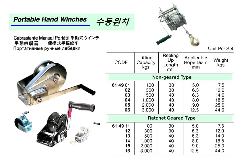 614916 RACHETGEAREDHANDWINCH,3000KGS
