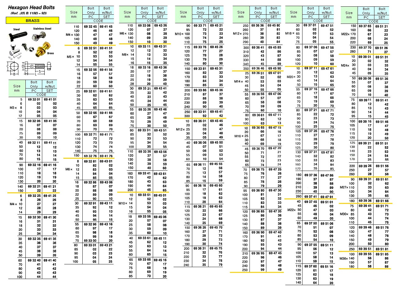 693679 HEX.HEADBOLTONLY,BRASS.M16x90MM