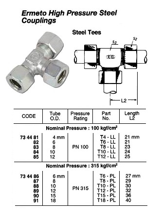 734485 HIGHPRESSURESTEELTEE,100KG,12MM